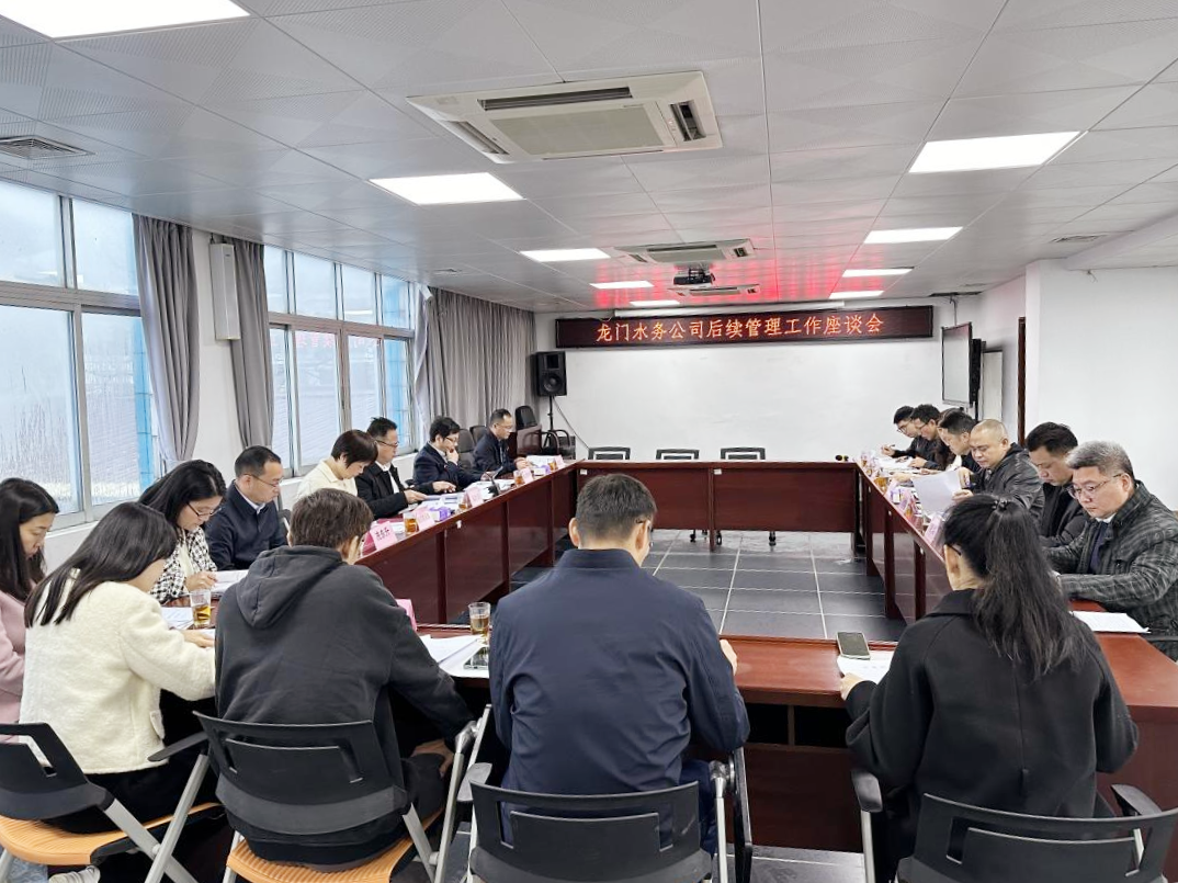 調(diào)研組一行首先到龍門縣城水廠召開了工作座談會。會上,龍門水務(wù)公司董事長曾繁昌詳細(xì)匯報(bào)了相關(guān)情況,包括接管后需協(xié)調(diào)事項(xiàng)的進(jìn)展情況、龍門水務(wù)公司機(jī)構(gòu)精簡方案、現(xiàn)有項(xiàng)目建設(shè)推進(jìn)情況以及企業(yè)降本控費(fèi)提質(zhì)增效工作舉措。吳勝華對龍門水務(wù)公司在劃轉(zhuǎn)后與集團(tuán)統(tǒng)一思想、統(tǒng)一意志、統(tǒng)一行動表示肯定。吳勝華指出,龍門水務(wù)公司要按照市國資委、集團(tuán)管理規(guī)章制度,加快完善組織架構(gòu)設(shè)置以及基本管理制度的制定修訂工作,重點(diǎn)抓好領(lǐng)導(dǎo)班子分工調(diào)整、協(xié)調(diào)事項(xiàng)跟進(jìn)、全面預(yù)算管理、項(xiàng)目合規(guī)管理、二次供水市場拓展等工作。